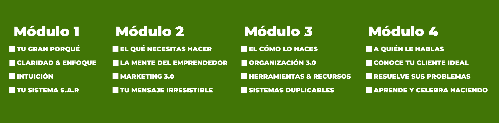 La Ruta del Emprendedor con sistemas y pasos claros en cada módulo.