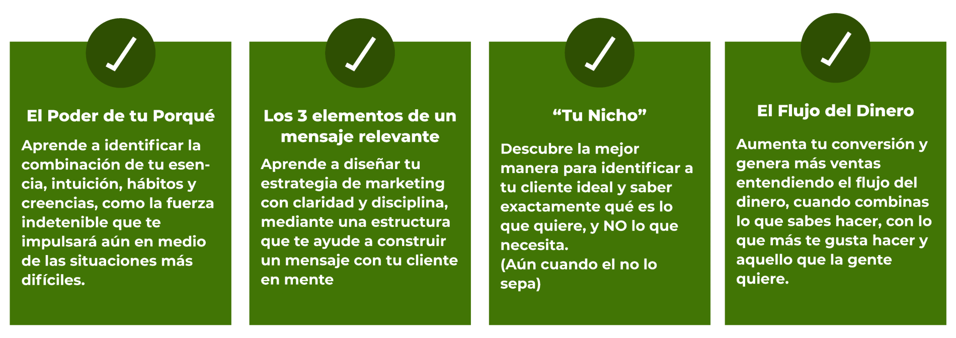 Además de aprender el sistema con los 4 pasos para emprender con éxito en cualquier negocio, también aprenderás: